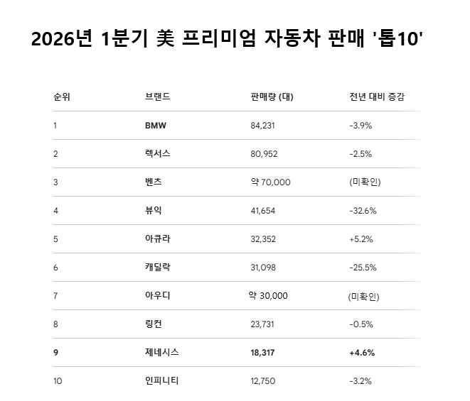 현대차 관계자는 "북미 시장에서 제네시스의 브랜드 인지도는 이미 임계점을 넘어서며 가파른 상승 곡선을 타고 있다"며 "향후 전동화 전환과 고성능 모델 투입을 통해 미국 프리미엄 시장 내 입지를 더욱 공고히 할 것"이라고 말했다.