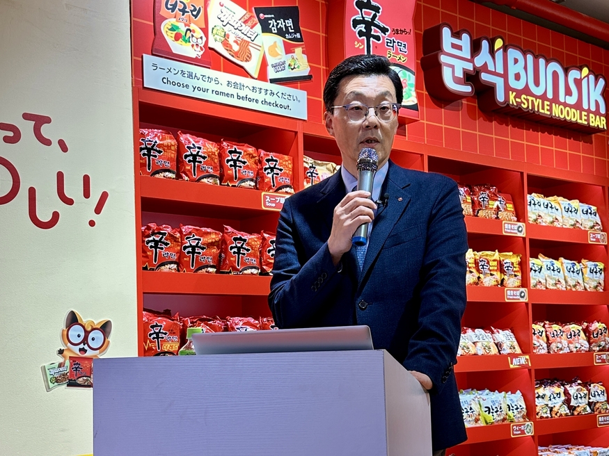 김대하 농심 일본법인장은 지난 15일 일본 도쿄 하라주쿠 '신라면분식' 팝업스토어에서 기자간담회를 열고 "신라면은 일본 시장에 매운 라면이라는 수요 자체를 창출한 브랜드"라며 "연평균 17% 이상의 성장세를 유지해 2030년까지 매출 400억 엔(약 3700억원) 달성과 일본 인스턴트 라면 톱6 진입을 목표로 하고 있다"고 밝혔다.