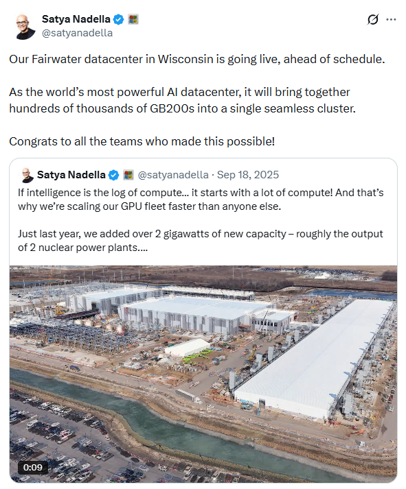 [더구루=홍성일 기자] 마이크로소프트(MS)가 33억 달러(약 4조6660억원)를 투입해 구축하고 있는 세계 최대 인공지능(AI) 데이터센터가 조만간 가동을 시작한다. 해당 데이터센터에는 수십만개 규모의 엔비디아 블랙웰 GB200 그래픽처리장치(GPU)가 장착된다. MS는 새로운 데이터센터가 가동되면 차세대 AI모델의 훈련 시간이 수 개월에서 수 주로 단축될 것으로 기대하고 있다.