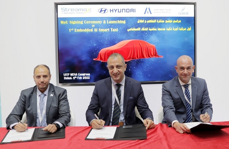 24일 업계에 따르면 현대차 UAE 독점 딜러사 주마 알 마지드(Juma Al Majid Est)는 두바이에서 열린 '2922 UITP 세계대중교통박람회'에서 현지 차량 모니터링 전문업체 '스트리맥스 테크놀로지'(Streamax Technology), 잠재 고객 대상 자산 관리 전문 업체 '글로벌 비즈니스 솔루션'(GBS Solutions)과 전략적 파트너십을 체결하고 쏘나타 AI 스마트 택시를 출시하기로 했다.