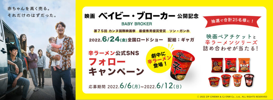[더구루=한아름 기자] 농심 재팬이 영화 '브로커' 개봉 기념으로 SNS(소셜 네트워크 서비스) 이벤트를 열고 인지도 제고에 나선다. 브로커 극 중 주인공이 신라면을 먹는 모습이 담기면서 농심이 제품 홍보에 적극 나선 것으로 보인다. 이를 통해 신라면 판매고를 올리겠다는 전략이다.