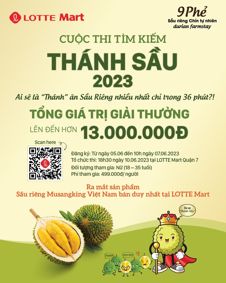 10일 업계에 따르면 롯데마트 베트남은 호치민에 자리한 남사이공점(LOTTE Mart Quận 7)에서 이날 두리안 먹기 챌린지 이벤트를 연다.