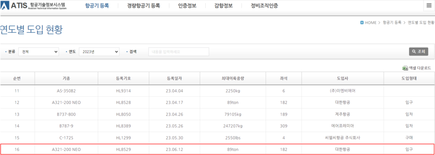 대한항공 관계자는 "A321네오 5호기가 12일부로 도입 등록됐다"며 "일본, 동남아 등 중단거리 노선에 투입한다"고 밝혔다.