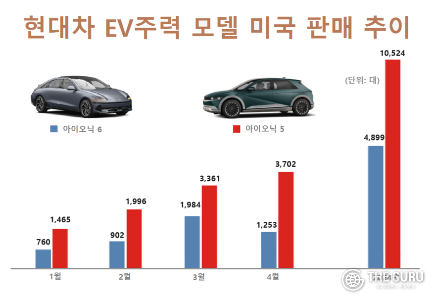 2일 현대차 미국판매법인(HMA)에 따르면 현대차는 지난달 미국 전기차 시장에서 4955대를 판매했다. 이는 E-GMP 플랫폼을 기반으로 하는 브랜드 전용 전기차 모델 아이오닉5와 아이오닉6 판매량만 합산한 수치이다. 구체적으로 아이오닉5는 전년 대비 59% 성장한 3702대, 아이오닉6는 전년 대비 41% 확대된 1253대가 판매됐다.