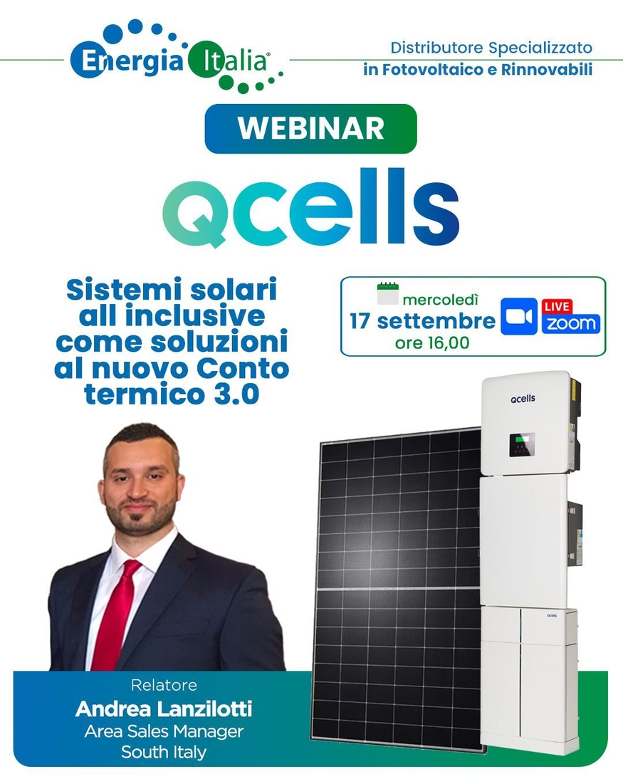 5일 이탈리아 태양광 설비 유통사인 에네르기아 이탈리아(Energia Italia)는 지난 17일(현지시간) '에너지 웨비나'를 열고 한화큐셀의 상업·주거용 태양광 솔루션을 홍보했다. 태양광 모듈인 '큐트론(Q.TRON)'과 주거용 통합 에너지 솔루션이 '큐홈(Q.HOME)'을 비롯해 한화큐셀의 포트폴리오를 소개하고 브랜드 인지도를 높였다.