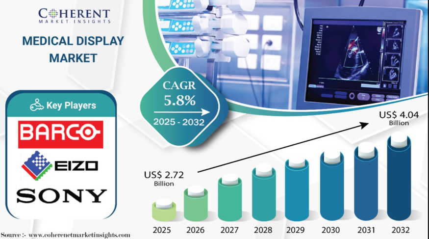 5일 미국의 시장조사기관 Coherent Market Insights(CMI)에 따르면, 의료 영상 및 진단 기술 혁신에 따른 고해상도·고신뢰성 디스플레이 수요가 오는 2032년까지 시장 성장을 주도할 것으로 분석됐다.