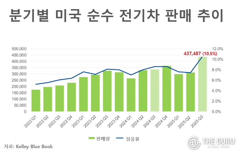 테슬라가 1위를 차지했다. 판매량은 45만1160대이며, 점유율은 43.2%에 달했다. 2·3위는 쉐보레와 포드이며, 각각 8만7137대(8.3%)와 6만9600대(6.7%)를 판매했다. 현대차에 이어 △캐딜락 3만8150대(3.7%) △혼다 3만6553대(3.5%) △BMW 3만4926대(3.3%) △리비안 3만2353대(3.1%) △아우디 2만9630대(2.8%) 순으로 나타났다.