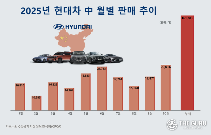 업계 관계자는 “현대차는 지난 7·8월 잠시 침체됐던 중국 판매 흐름에서 벗어나며 2개월 연속 반등하고 있다”며 “특히 일렉시오에 대한 기대감이 커지고 있는 만큼 최근 추세가 이어질 경우 신에너지 시장을 중심으로 연말 ‘年 20만 시대’에 재진입할 것으로 기대된다"고 말했다.