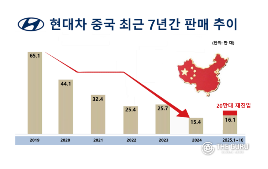 한편, 현대차 지난 2016년 중국 현지에 5개 공장을 운영하며 114만대를 판매, 정점을 찍은 이후 지난 2017년 사드(THAAD) 배치로 인한 중국의 보복 조치와 코로나19 팬데믹 등의 여파로 △2019년 70만대 △2020년 44.6만대 △2021년 36만대 △2022년 25만대 △2023년 24만대를 기록했었다. 지난해의 경우 15만4000대까지 추락했었다.