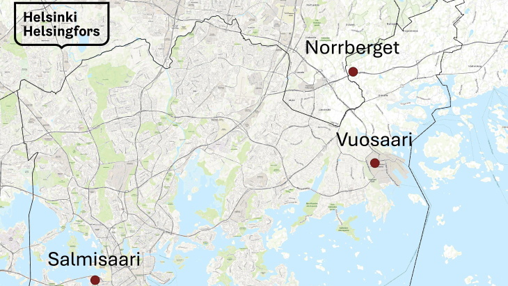 3개 지역은 부오사리(Vuosaari)와 살미사리(Salmisaari) 발전소 지역과 서부 외스테순돔(Östersundom)에 있는 노르베르그(Norrberget) 지역이다.