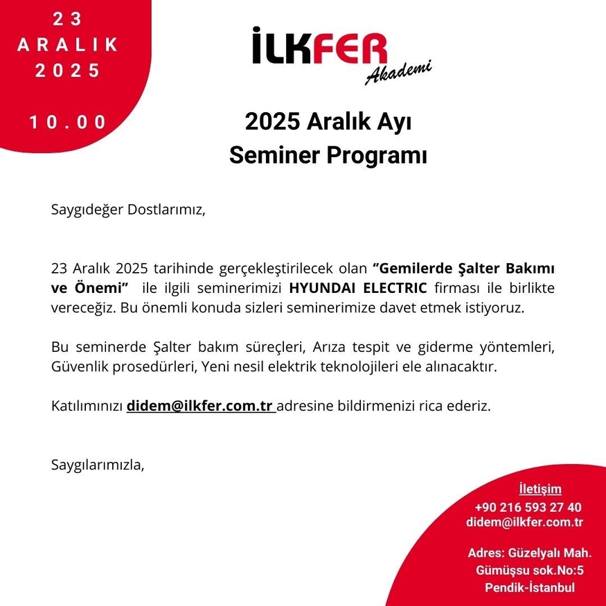 9일 터키 해운 잡지 데니즐릭 데르기시(Denizcilik Dergisi)에 따르면 HD현대일렉트릭은 현지 기술 교육기관인 일크퍼 아카데미(İlkfer Akademi)와 공동으로 ‘선박 내 차단기(스위치 기어) 유지보수와 안전 관리’ 세미나를 개최한다. 오는 23일(현지시간) 열리는 세미나는 △고장 진단 △안전 절차 △차세대 전기기술 등 선박 전기설비 핵심 분야를 폭넓게 다루며, 현장 엔지니어와 선박 운영사들의 실무 역량 강화를 목표로 한다.