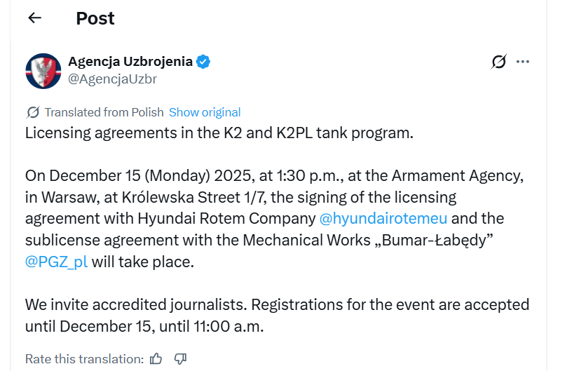 이번 계약은 지난 10월 말 체결한 파트너십의 연장선이다. 현대로템과 부마르-와벤디는 폴란드향 K2 전차인 K2PL과 계열 전차의 생산과 유지·보수·정비(MRO)를 위한 기술 이전 계약을 맺었었다. 이어 현대로템의 기술에 접근할 권리를 폴란드 업체에 부여하는 라이선스 계약에 서명할 예정이다.