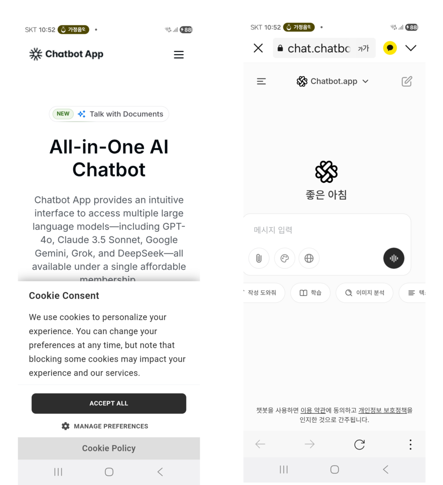 대표적인 사례로 해외에서도 논란이 된 chatbotapp.ai와 그 하위 도메인 chat.chatbotapp.ai가 있다. 이 사이트는 GPT-3.5, GPT-4, ChatGPT 등의 명칭을 전면에 내세우며 여러 AI 모델을 한 번에 쓸 수 있는 것처럼 홍보하고, 연간 구독(약 60달러 내외)을 ‘특가’로 강조하는 방식으로 이용자를 유인하고 있다.