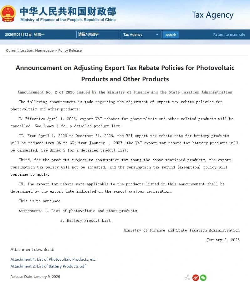 [더구루=길소연 기자] 중국이 글로벌 태양광 및 배터리 공급망 재편을 위해 수출 지원 세금 환급률을 조정했다. 태양광과 리튬 배터리 제품 등에 대한 수출 세제 혜택을 줄여 신에너지 부문 과잉생산에 대한 국제적 우려를 완화한다.
