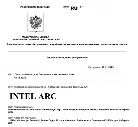 [더구루=홍성일 기자] 인텔이 러시아에서 그래픽카드 브랜드인 '아크(Arc)'의 상표를 등록했다. 지난해 인공지능(AI) 비즈니스 솔루션 '인텔 티버(Intel Tiber)'에 이어 아크까지 상표등록이 이뤄지며 인텔이 러시아 시장 재진출을 준비하고 있다는 분석이 나온다. 또한 다수의 서방기업이 연이어 상표등록을 진행하면서 러시아 시장 진입이 가속화 될 것이라는 반응이 나오고 있다.