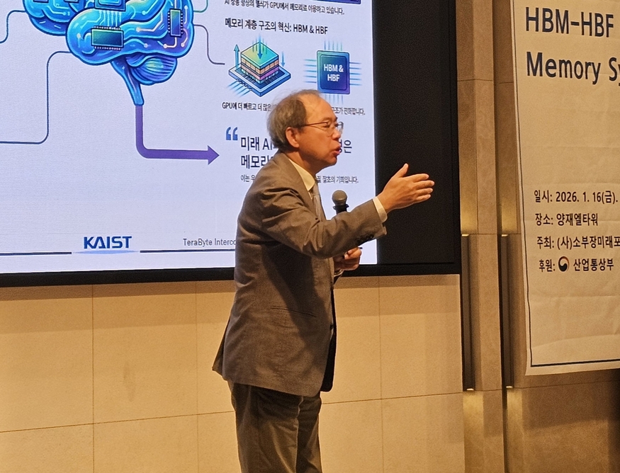 김정호 한국과학기술원(KAIST) 전기·전자공학과 교수는 16일 서울 서초구 양재동 엘타워에서 열린 제15회 소부장미래포럼에서 'AI 2026 예측과 HBM-HBF 하이브리드 메모리 시스템'이라는 주제발표를 진행하며 AI의 미래를 이같이 진단했다. 김 교수는 HBM의 기본 구조를 창안해 'HBM의 아버지'로 불리는 인물이다.