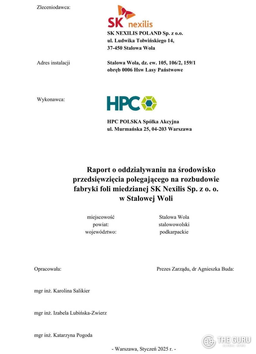 25일 폴란드 정보공개 포털 'BIP'에 따르면 스탈로바 볼라시는 최근 SK넥실리스 폴란드법인이 신청한 구리 원료 전처리 설비 구축과 관련해 환경영향평가 절차 개시를 공고했다. 시청은 해당 공고를 통해 환경영향평가 보고서 열람과 함께 주민 의견 수렴 절차를 시작했으며, 관련 문서는 오는 3월20일까지 공개돼 이해관계자들이 의견을 제출할 수 있도록 했다.