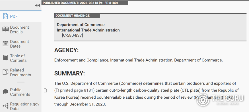 [더구루=길소연 기자] 동국제강과 현대제철이 미국에 수출한 탄소 및 합금강 절단판(cut-to-length plate, 이하 CTL)이 정부 보조금을 받은 사실이 인정되면서 미국 정부로부터 상계관세율(CVD)을 적용받는다. 미 국제무역법원 판결에 따라 최종 관세 부과가 확정되면 한국산 CTL의 대미 수출 경쟁력 약화와 함께 시장 점유율 감소가 불가피해진다.