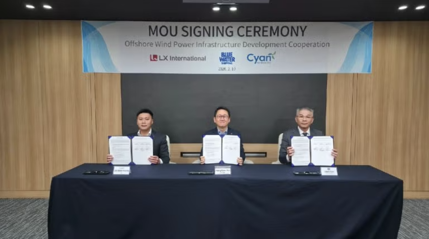 25일 LX인터내셔널에 따르면 회사는 최근 사이안 리뉴어블스(Cyan Renewables), 블루워터 쉬핑(Blue Water Shipping)과 충남 당진에 해상풍력 설비 설치를 지원하는 마샬링(장치) 항만 개발을 위한 양해각서(MOU)를 체결했다. 이번 협약은 법적 구속력이 없는 논바인딩 형태로, 구체적인 사업 구조나 투자 규모, 착공 시점 등은 확정되지 않은 초기 검토 단계다.