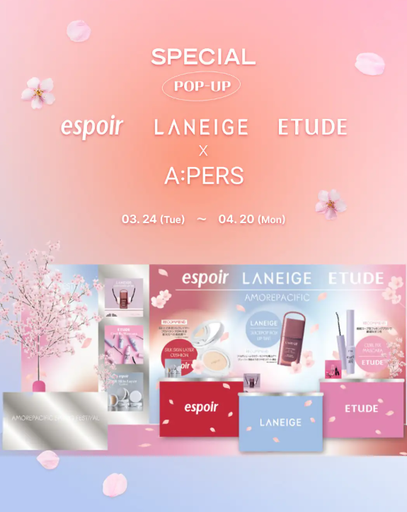 26일 일본 유통 기업 L&K에 따르면 아모레퍼시픽은 다음 달 20일까지 도쿄 신오쿠보 소재 체험형 뷰티 매장 'A:PERS'에서 '아모레퍼시픽 × A:PERS 팝업'을 운영한다. 이번 팝업은 아모레퍼시픽 대표 브랜드 3곳의 신제품과 인기 아이템을 한 자리에서 경험할 수 있도록 구성됐다.