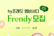 [더구루=김현수 기자] hy(옛 한국야쿠르트)가 자사몰 ‘hy프레딧’을 경험하고 홍보할 일반 소비자들을 최초 모집한다. 참여자들에게는 제품 구매와 체험 등을 지원한다. 12일 hy에 따르면 오는 27일까지 ‘hy프레딧’ 엠베서더 ‘프렌디(FRENDY)’ 1기를 모집한다. 활동 기간은 오는 4월부터 6월까지 3개월이다. 주요 활동 내용은 SNS 콘텐츠를 통해 hy프레딧 제품·서비스 홍보와 친구 초대 기능을 활용한 신규 회원 모집 등이다. 선발된 프렌디에게는 △hy 대표 제품 무료 체험 쿠폰(최초 1회) △구매 지원 적립금 2만 원(매월) △홍보할 제품 무료 교환 쿠폰 △hy프레딧 구매 금액 10% 적립 등을 기본 혜택으로 제공한다. 아울러 친구 초대 특별 혜택은 매월 공개할 예정이다. hy프레딧을 이용하면서 느낀 서비스 개선 의견도 제안할 수 있다. 지원 자격은 본인 명의 SNS 계정을 보유한 hy프레딧 정기구독 이용자나 멤버십 회원이다. 지원 방법 등 자세한 내용은 hy프레딧에서 확인할 수 있으며 합격자는 이달 31일 발표한다. 박철민 hy 마케팅 담당은 “hy를 사랑하는 고객과 식음료 트렌드를 누구보다 빠르게 경험하고 싶은 분들의 많은 참여를 기대한다”고