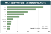[더구루=정예린 기자] 글로벌 반도체 장비 상위 10개사의 반도체 사업 매출이 올 상반기 고공 성장세를 보이고 있다. 첨단 공정 장비 수요 확대와 중국·미국·일본 기업 간 경쟁 구도 속에서 시장 집중도가 높은 모습이 나타났다. 20일 중국 시장조사업체 '시노리서치(CINNO Research)'에 따르면 올 상반기 글로벌 반도체 장비사 상위 10곳의 매출 합계는 약 640억 달러로, 전년 동기 대비 약 24% 늘었다. 상위 5개사의 매출 합계는 540억 달러로 전체의 85%를 차지했다. 작년과 비교해 순위 변동은 크지 않았다. 부동의 1위는 네덜란드 ASML이었다. ASML은 상반기 매출 170억 달러를 기록하며 전년 대비 38% 성장했다. 첨단 파운드리(반도체 위탁생산)와 메모리 투자 확대 속에서 7나노미터(nm) 이하 공정용 극자외선(EUV) 노광기 독점 공급이 매출 증가를 견인했다. 미국 어플라이드 머티리얼즈(AMAT)는 매출 137억 달러로 2위를 기록했다. △램리서치 3위 △일본 도쿄일렉트론(TEL) 4위 △미국 KLA 5위에 올랐다. 톱5 업체 중 ASML을 제외하고 올 상반기 매출 성장률이 가장 두드러진 기업은 램리서치로, 지난해 같은 기간과 비교