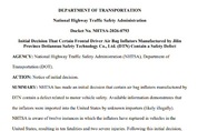 [더구루=나신혜 기자] 미국 도로교통안전국(NHTSA)이 중국의 자동차 부품 제조사인 '길림성 데티안누오 안전기술 주식회사(DTN)'의 에어백 부품에 칼을 빼들었다. NHTSA는 앞서 쉐보레 말리부와 현대차 쏘나타 사고 등에 발생한 12건의 사망·중상의 원인으로 해당 에어백 부품이 지목되자 지난해 10월 조사에 착수한 바 있다. NHTSA는 해당 제품이 사고 이력이 있는 중고차 수리 과정에서 정품 대신 불법 장착됐을 거라고 보고 있다.