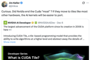 [더구루=정예린 기자] 짐 켈러 텐스토렌트 최고경영자(CEO)가 최근 엔비디아의 그래픽처리장치(GPU) 개발 플랫폼 '쿠다(CUDA)' 업데이트가 기존 독점 구조를 흔들 수 있다는 의구심을 드러냈다. 엔비디아에 대한 개발자의 의존도와 충성도가 낮아지면서 생태계가 약화돼 엔비디아의 시장 지배력이 시험대에 오를지 주목된다.